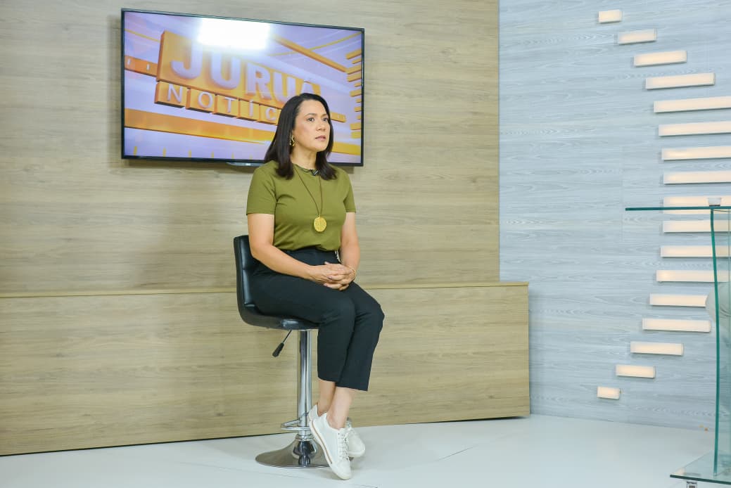 Na TV Juruá, em Cruzeiro do Sul, Mailza destaca as ações do governo. Foto: Marcos Santos/SecomAssistência Social