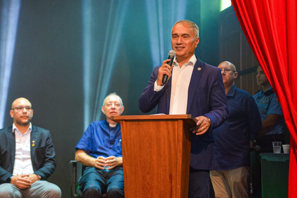 Gladson Camelí esteve acompanhado de autoridades durante a solenidade. Foto: Marcos Santos/ SecomCamelí frisou, que os resultados alcançados ao longo da gestão são fruto do trabalho conjunto entre servidores, instituições e representantes políticos, destacando que a união é fundamental para que o poder público entregue respostas efetivas à sociedade.