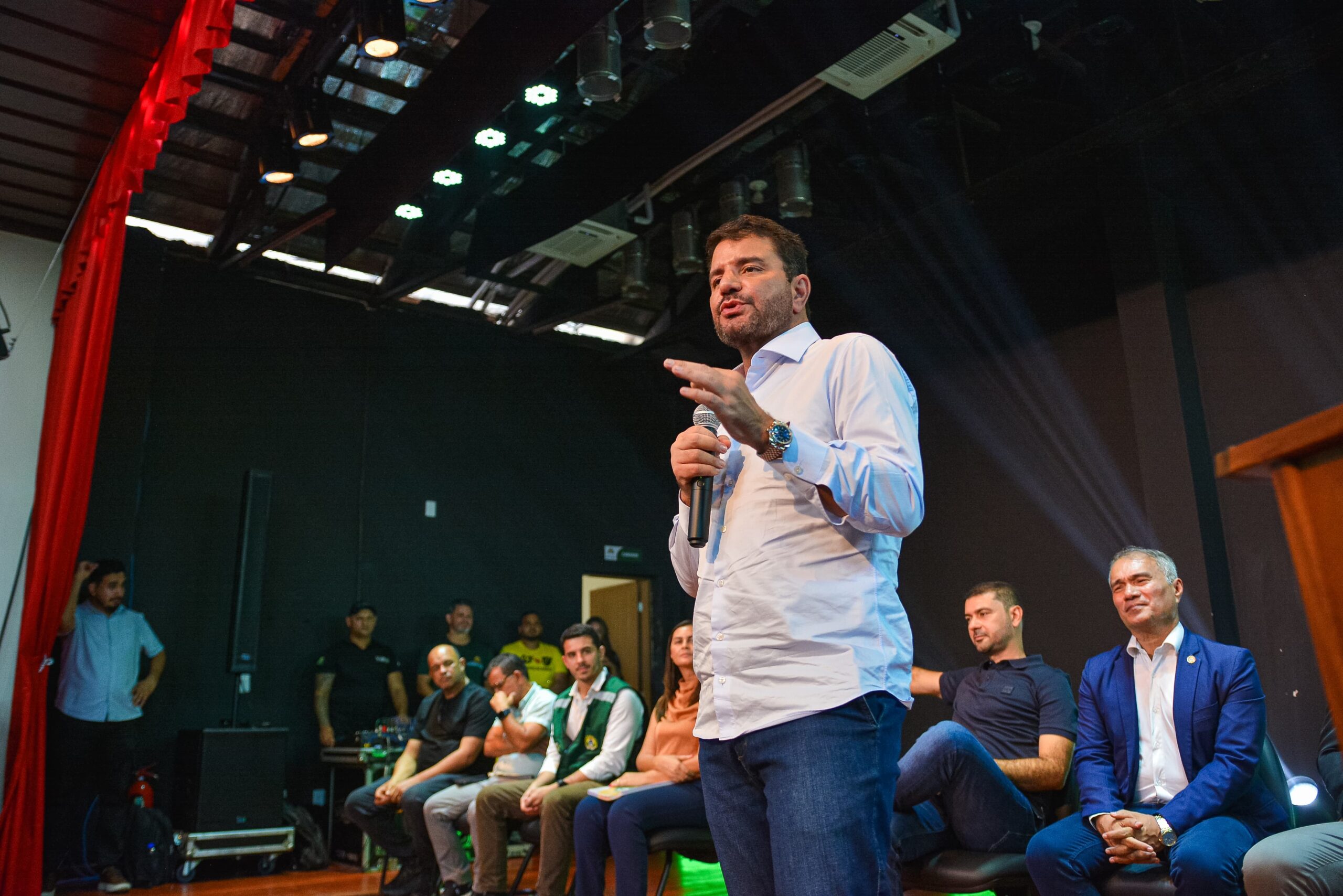 “Tenho a certeza que será um lugar para a promoção das artes e cultura acessível a todos os nossos cidadãos e cidadãs”, afirmou Camelí. Foto: Marcos Santos/SecomO chefe do Executivo ressaltou a satisfação de retornar a Cruzeiro do Sul para mais uma entrega histórica: “É sempre especial estar em Cruzeiro do Sul, agradeço o empenho das equipes envolvidas na execução das obras e reforço a importância da união entre os poderes para garantir avanços à população”.