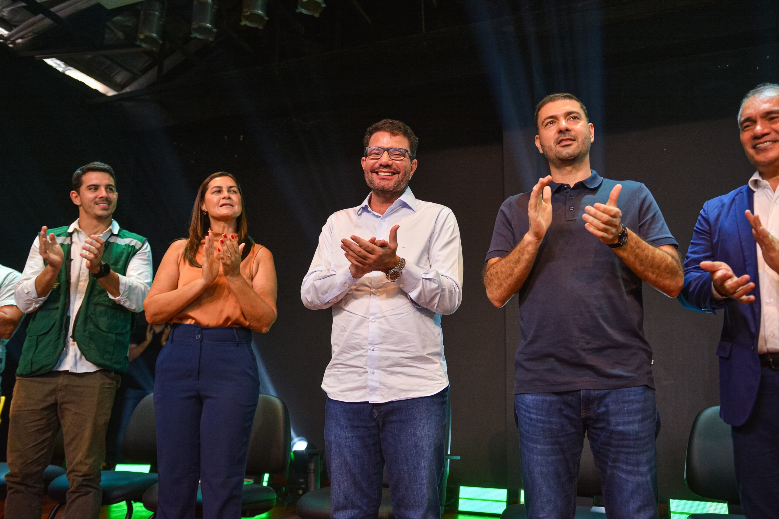 Gladson Camelí esteve acompanhado de autoridades durante a solenidade. Foto: Marcos Santos/ SecomCamelí frisou, que os resultados alcançados ao longo da gestão são fruto do trabalho conjunto entre servidores, instituições e representantes políticos, destacando que a união é fundamental para que o poder público entregue respostas efetivas à sociedade.
