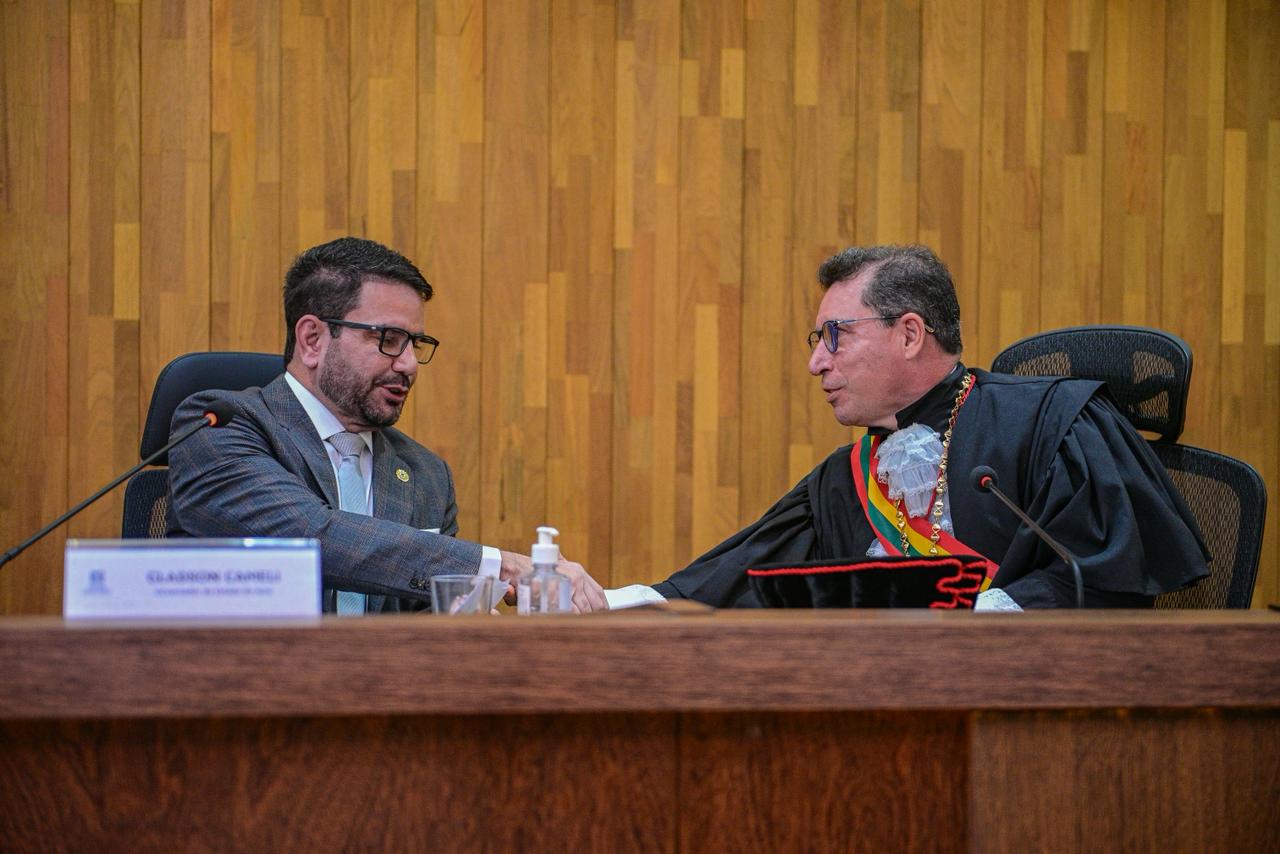 Em seu pronunciamento, o governador Gladson Camelí agradeceu a parceria institucional construída ao longo de seus mandatos e ressaltou ações conjuntas entre o governo do Estado e o Tribunal de Justiça, destacando o Projeto Cidadão, considerado a maior ação social do Acre, além da colaboração do Judiciário em programas de regularização fundiária e na entrega de títulos definitivos de propriedade.