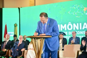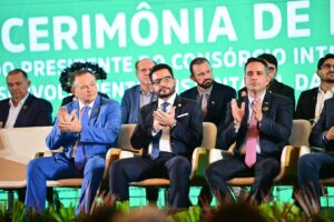Governador Gladson Camelí discursa na solenidade de posse do novo presidente do Consórcio da Amazônia Legal. Foto: Diego Gurgel/SecomNa solenidade de posse, Camelí mencionou a importância da atuação do novo presidente. “Desejo êxito ao meu amigo, governador do Maranhão, Carlos Brandão, que assume a presidência deste consórcio que, desde a sua criação, tem sido fundamental para posicionar os estados da Amazônia Legal com ações e resultados concretos na agenda ambiental e climática de diversos países”, disse.