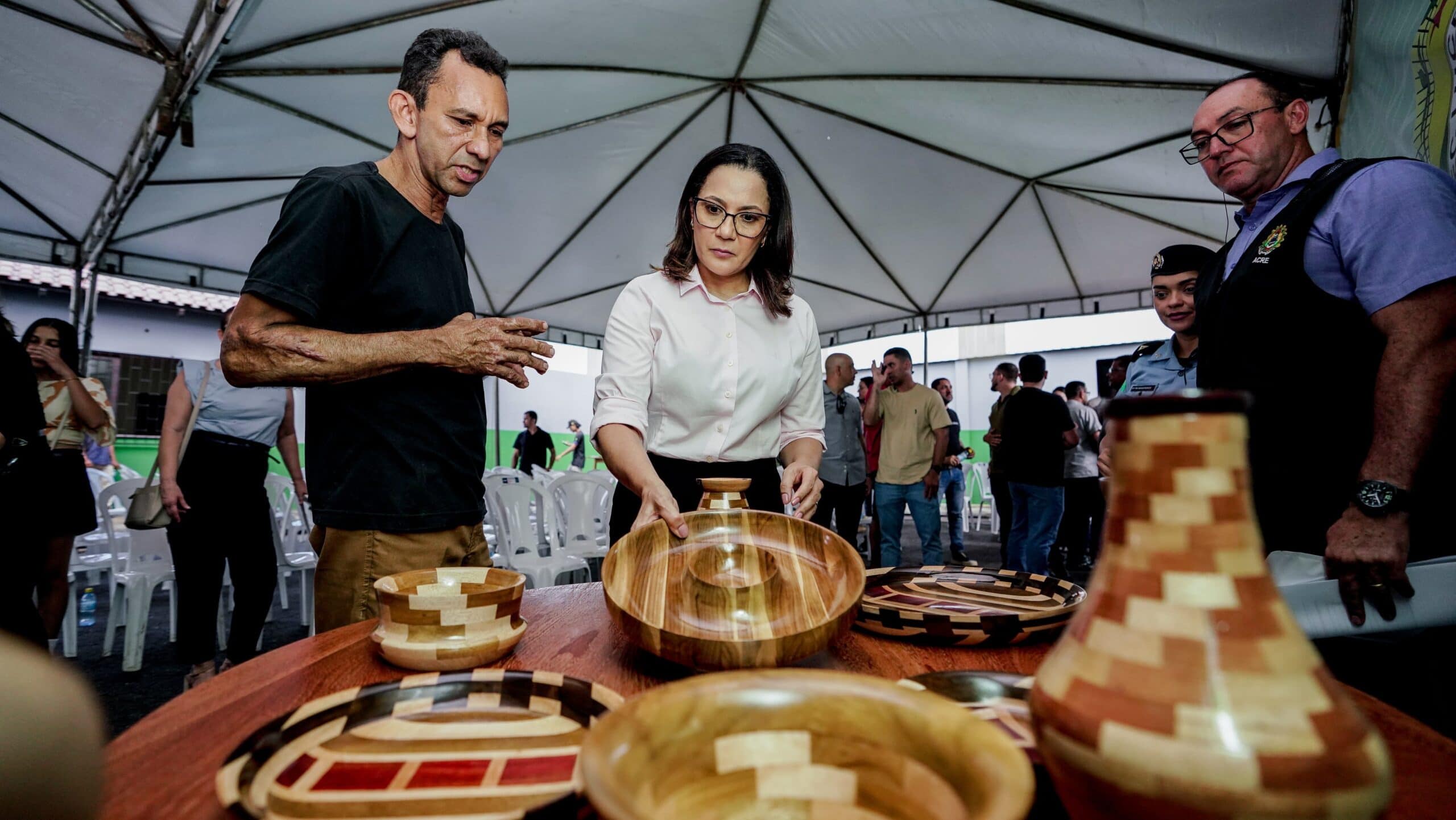 Durante o evento, foram expostos produtos confeccionados a partir da madeira, evidenciando o potencial da cadeia produtiva florestal, o trabalho dos empreendedores locais e a valorização da produção sustentável da região. Foto: Neto Lucena/ SecomEntre os beneficiados, o produtor rural e empresário do setor cafeeiro, Raimundo Carlos Oliveira, celebrou o recebimento da licença ambiental.